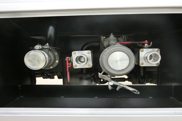 罐體實(shí)際容積14.5立方,方圓罐,脹形封頭,采用優(yōu)質(zhì)碳鋼板材制作,罐體材料厚度以設(shè)計(jì)為準(zhǔn), (帶80-60泵可以自吸自排)泵進(jìn)出口按裝在正駕駛室一側(cè),兩個(gè)歐標(biāo)罐口,一個(gè)海底閥帶報(bào)警裝置,一個(gè)防溢流探桿及插座、一個(gè)廢氣回收、一個(gè)下裝油副駕駛一側(cè),升降護(hù)欄,配一個(gè)防火帽,靜電帶,兩根等長(zhǎng)的輸油管帶陰陽(yáng)接頭,兩個(gè)滅火器,兩個(gè)堵頭,帶后爬梯,鋼絲網(wǎng)走道,一個(gè)工具箱,安全告示牌,其它標(biāo)配?蛇x裝大流量加油機(jī)及帶15米自動(dòng)回位卷盤及油槍裝在大梁側(cè)邊。