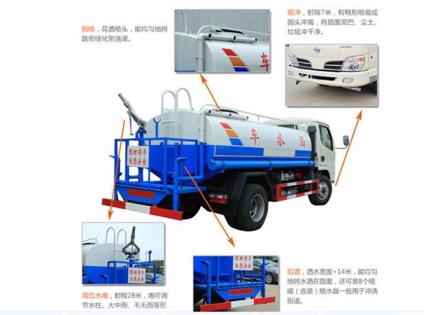 灑水車又稱園林綠化噴灑車、水罐車、農(nóng)藥噴灑車、多功能灑水車等,主要適合于各種路面沖洗,樹木、綠化帶、草坪綠化,道路、廠礦企業(yè)施工建設,高空建筑沖洗。具有灑水、壓塵、高、低位噴灑,農(nóng)藥噴灑、護欄沖洗等功能。 |