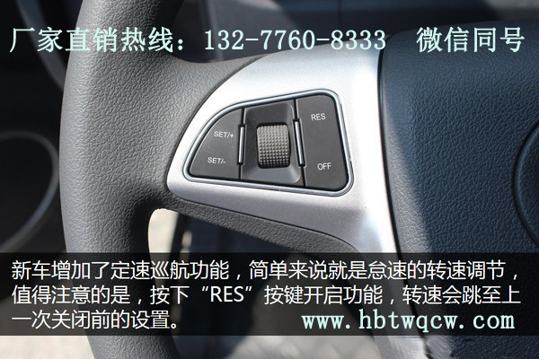 整體風(fēng)格趨向于乘用車的設(shè)計(jì),質(zhì)感提升,用戶好評(píng)度更高,并且可后期加裝支持方向盤多功能按鍵操作的原廠大屏影音導(dǎo)航系統(tǒng)。另外可以看到,該國(guó)五新車增配了定速巡航功能,按鍵設(shè)置在方向盤左側(cè),操作簡(jiǎn)便。